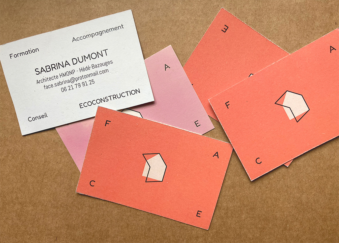 Identité visuelle pour une architecte qui propose un accompagnement dans la conception et construction de maisons respectueuses de l'environnement.